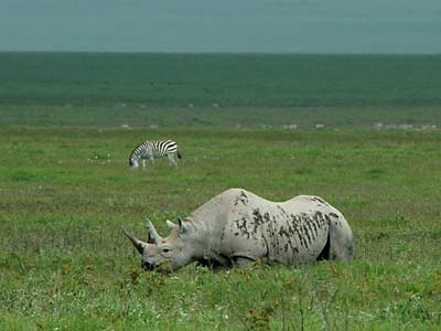 Im Ngorongoro-Krater stehen die Chancen gut, eins dieser seltenen Tiere zu Gesicht zu bekommen. Nach letzten Angaben (2008) leben hier 25 Exemplare. Wir sahen fünf, darunter eine Mutter mit Kind.