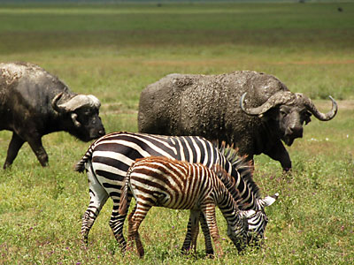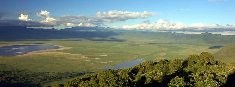 Vor drei Millionen Jahren, als unsere ersten Vorfahren diese Gegend besiedelten, erhob sich der Vulkan des Ngorongoro auf gleicher Höhe mit dem Kilimanjaro. Dann stürzte sein Kegel durch geologische Bewegungen des Grabenbruchs ein und hinterließ eine sagenhafte Caldera, den heutigen Ngorongoro-Krater, mit einen Durchmesser von etwa 19 km der größte geschlossene Krater der Erde. Der Kraterboden liegt auf rund 2380 m über NN, die Seitenwände sind 400 bis 600 m hoch, so daß die Kraterkante bis zu 3000 m Höhe erreicht (etwa so hoch wie die Zugspitze!).