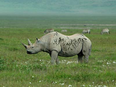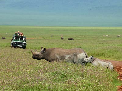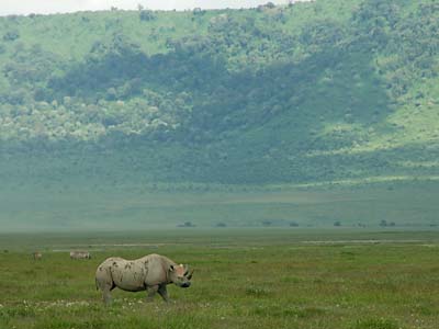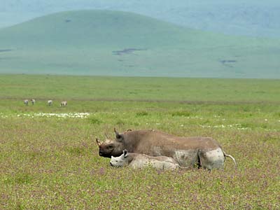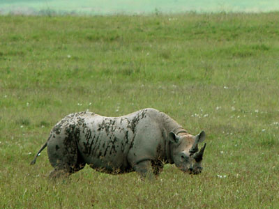 Im Ngorongoro-Krater stehen die Chancen gut, eins dieser seltenen Tiere zu Gesicht zu bekommen. Nach letzten Angaben (2008) leben hier 25 Exemplare. Wir sahen fünf, darunter eine Mutter mit Kind.