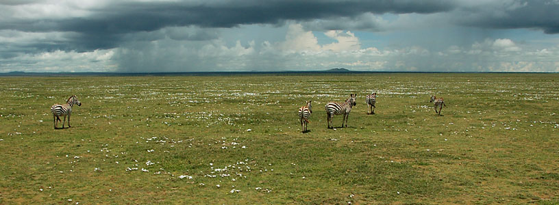 Man stellt sich die Serengeti eher als trockene Steppe vor, was die meiste Zeit des Jahres auch zutrifft. Braun- und Gelbtöne beherrschen dann das Bild. Während der Regenzeit jedoch wird alles saftig grün, unzählige Blüten zeigen sich. Die Pflanzen nutzen die kurze Vegetationsperiode zur Vermehrung, die Tierherden finden jetzt auch hier in der Kurzgras-Savanne im Südosten der Serengeti reiche Nahrung, bevor sie zu Beginn der Trockenzeit wieder auf Wanderschaft gehen.