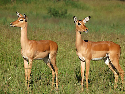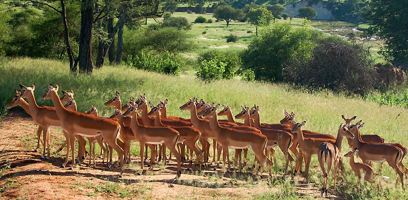 Die Impala oder Schwarzfersen-Antilope (Aepyceros melampus) ist die häufigste Antilope im Tarangire-Nationalpark. Man findet sie von Kenia und Uganda über Tansania, Sambia, Mosambik und Simbabwe bis nach Botswana und ins nordöstliche Südafrika. Isoliert lebt die Unterart der Schwarznasen-Impala (A. m. petersi) im Grenzgebiet von Angola und Namibia (auch im Etosha-Nationalpark in Namibia).