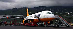 Das obligatorische 1. Foto: Ein Airbus 320 brachte mich in knapp 5 Stunden auf die Insel. Klappte alles prima, mein Leihwagen (Seat Ibiza) wartete schon. Auf nach El Paso zu Hella...