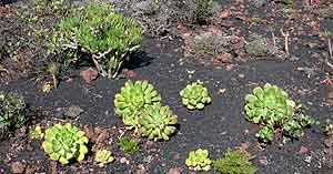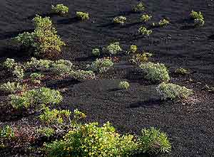 Nur wenige Pflanzen erobern langsam die Vulkanasche. Tolle Farbkontraste!