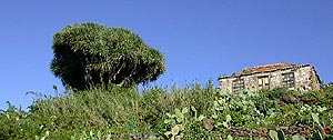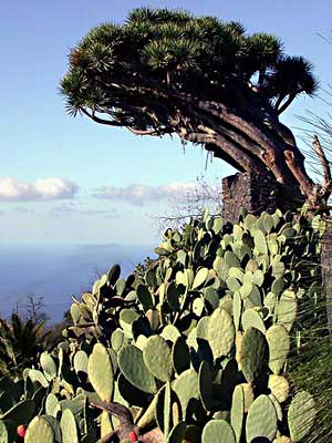 Ein etwas windschiefer Drachenbaum bei Puntagorda an der Westseite. Bekannt als Postkartenmotiv.