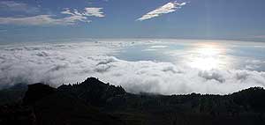 Auf La Palma scheint irgendwo immer die Sonne, hatte Atze (unser Tauchlehrer, langjähriger La-Palma-Fan) gesagt. Recht hat er. Ich wollte nach Norden, sah erste Wolken und wich nach oben aus, auf den Roque de los Muchachos. Dort, über den Wolken, scheint praktisch immer die Sonne. Nicht umsonst stehen da so viele Teleskope.