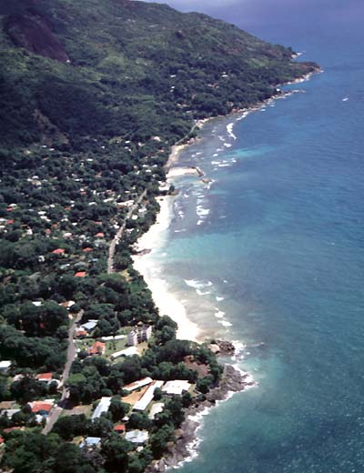Wenn auch nur kurz, war das eins der schönsten Erlebnisse unserer Seychellen-Reise. Wie ein Fahrstuhl steigt so ein Helicopter nach oben. In ein paar Minuten überflogen wir die Berge, auf denen wir am Tag davor bis zur Erschöpfung herumgeklettert waren, kreisten über unserem Strand auf der anderen Inselseite und schwebten wieder zurück.