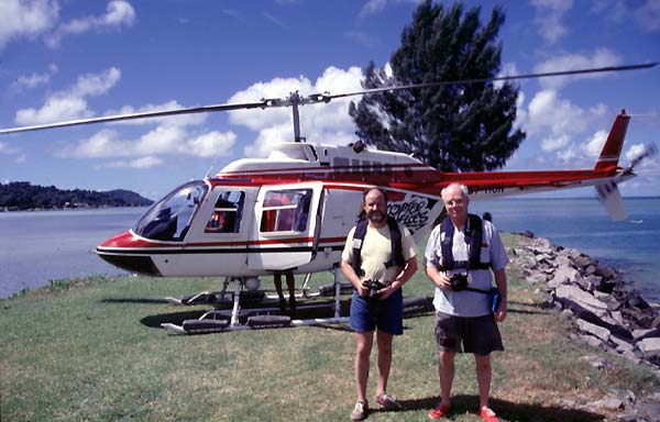 Air Seychelles spendierte Langstrecken-Kunden, die wir ja waren, einen kurzen Hubschrauber-Rundflug. Als Begrüßungsgeschenk sozusagen. Das ließen wir uns nicht entgehen, vereinbarten einen Termin und fuhren nach Victoria, um uns die Insel Mahe von oben anzuschauen.